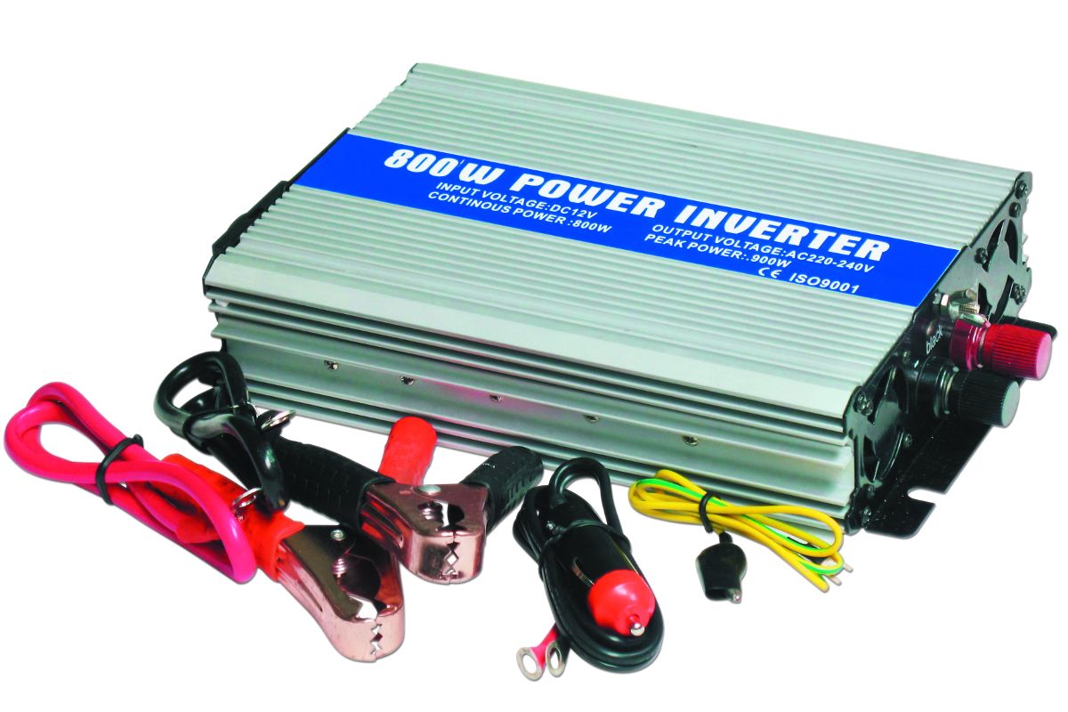 Инвертор современный, компактный. Преобразует постоянный ток 12А автомобильного аккумулятора в переменный ток 220В. Мощность 800 вт.