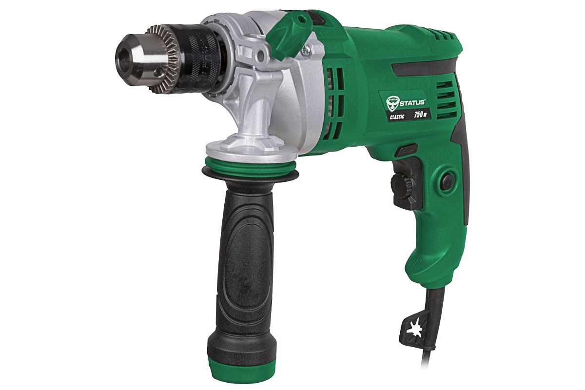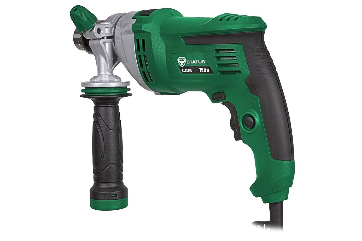 Дрель ударная STATUS DP750 - 750Вт, 0 - 3000 об/мин, алюминиевый корпус редуктора, реверс, ключевой патрон 13 мм. В комплекте: алюминиевая передняя рукоятка. Поставляется в коробке.