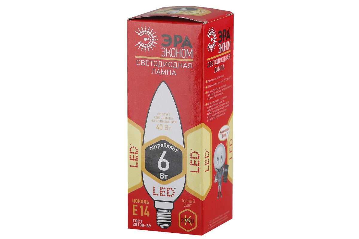 Лампа светодиодная ЭРА LED smd B35-6w-827-E14_eco (10/100/5000)