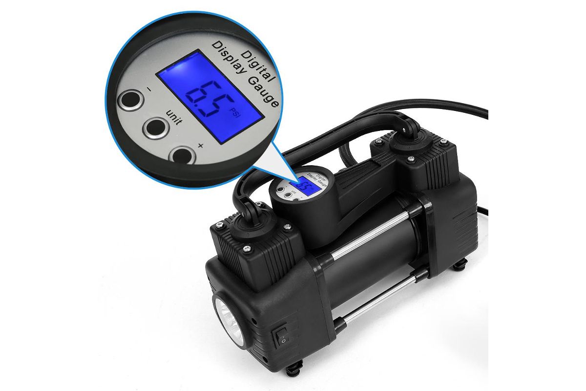 Двухцилиндровый компрессор AUTOVIRAZH AV-010999 используется для оперативной подкачки шин, матрасов, надувных лодок и т. д.