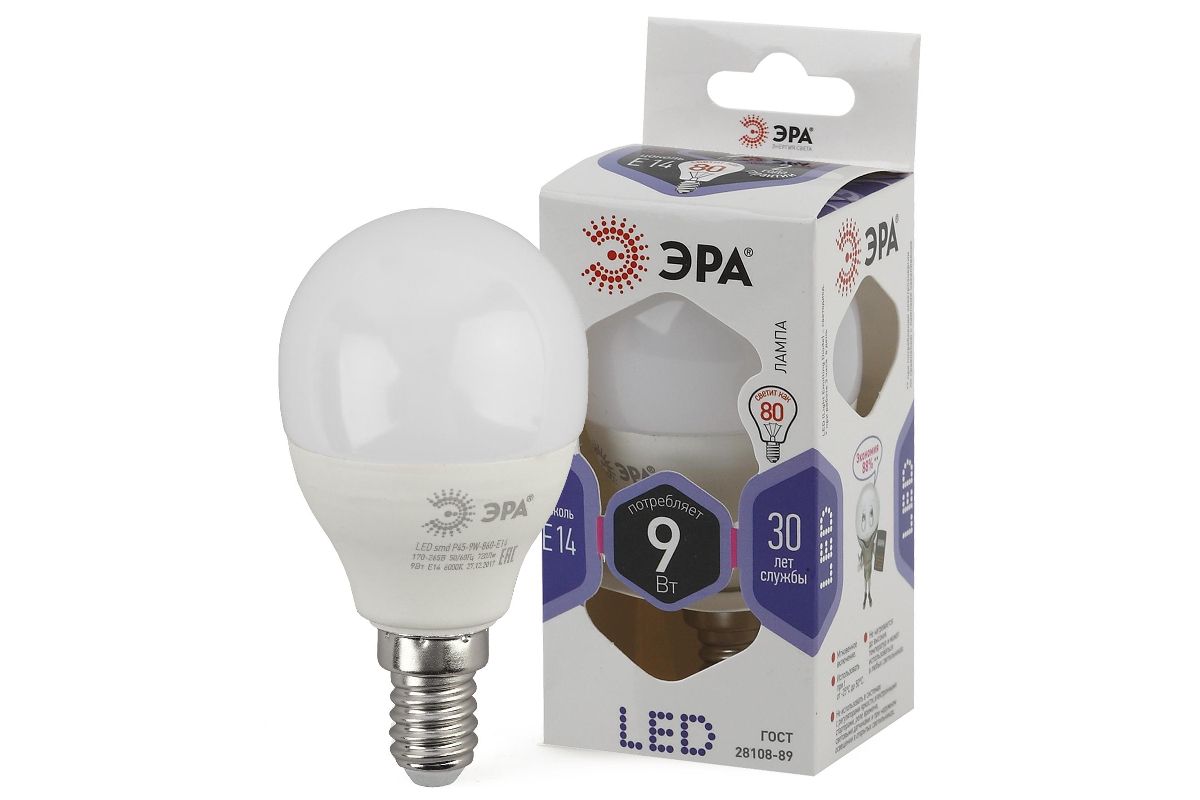 Экономичная светодиодная лампа ЭРА Серии Стандарт с отличными характеристиками для установки в люстры и все типы бытовых светильников - потолочные, настольные, бра.